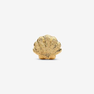 PANDORA Textured shell 14k gold-plated mini charm