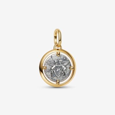 PANDORA Cupids sterling silver and 14k gold-plated medallion with clear cubic zirconia