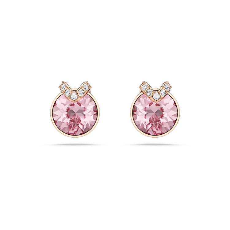 SWAROVSKI Bella stud earrings, Round cut, Pavé, Pink, Rose gold-tone plated