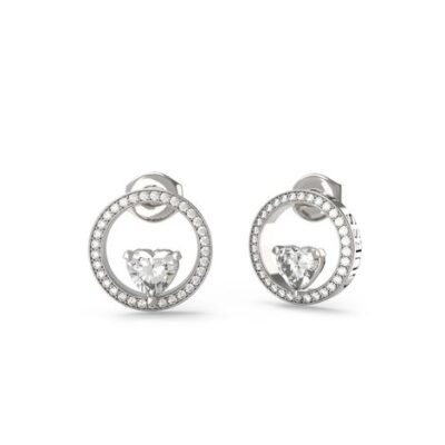 GUESS STEEL M’AMA NON M’AMA Silver Earrings With Heart With Stones