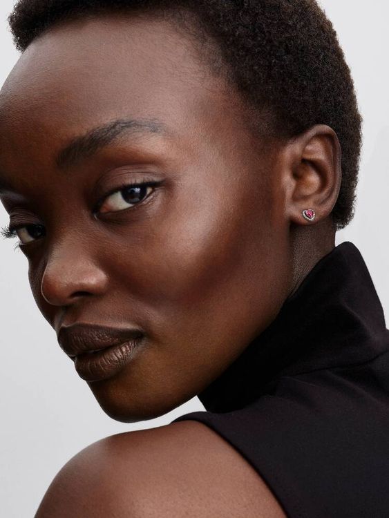 Love is in the details. These sterling silver earrings are sold as a pair and feature a red heart-shaped center stone. Slightly raised and surrounded by clear cubic zirconia, each stone catches the light.