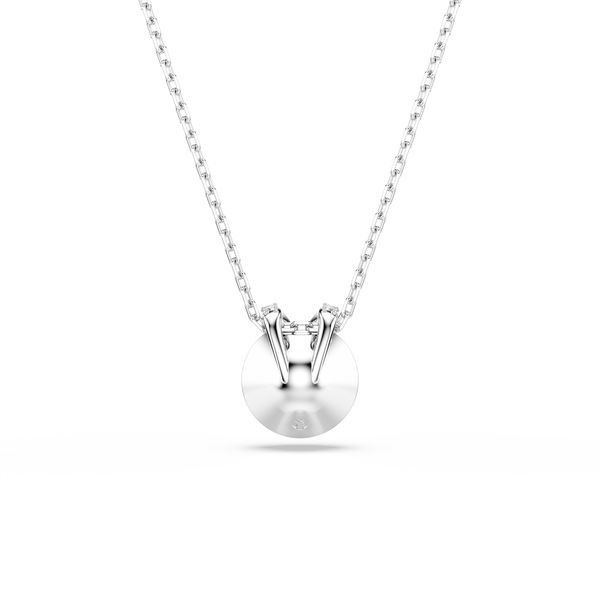 This radiant V-shape pendant has eye-catching appeal thanks to its central light blue crystal set in rhodium plating. A flourish of shimmering pavé adds an extra layer of beauty, while the delicate chain exudes pure elegance. Wear it together with the matching earrings for a wondrous combination.