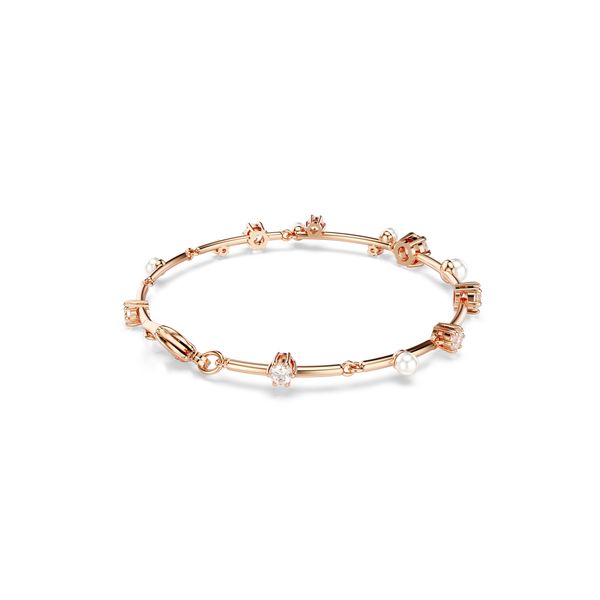 SWAROVSKI Constella Tennis bracelet, Crystal pearl, Round cuts, White, Rhodium plated