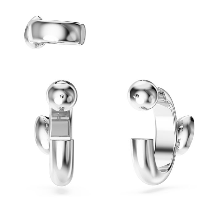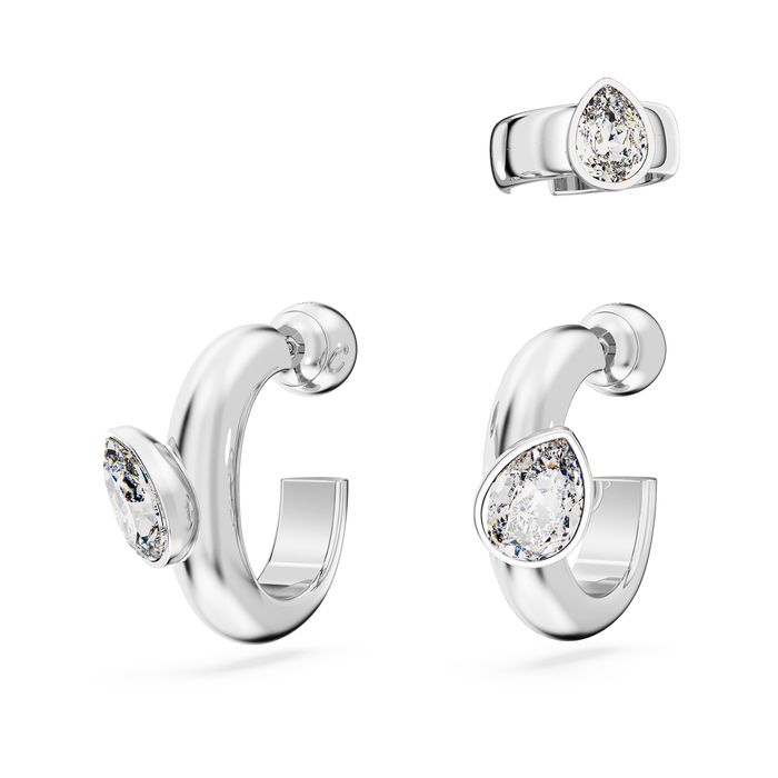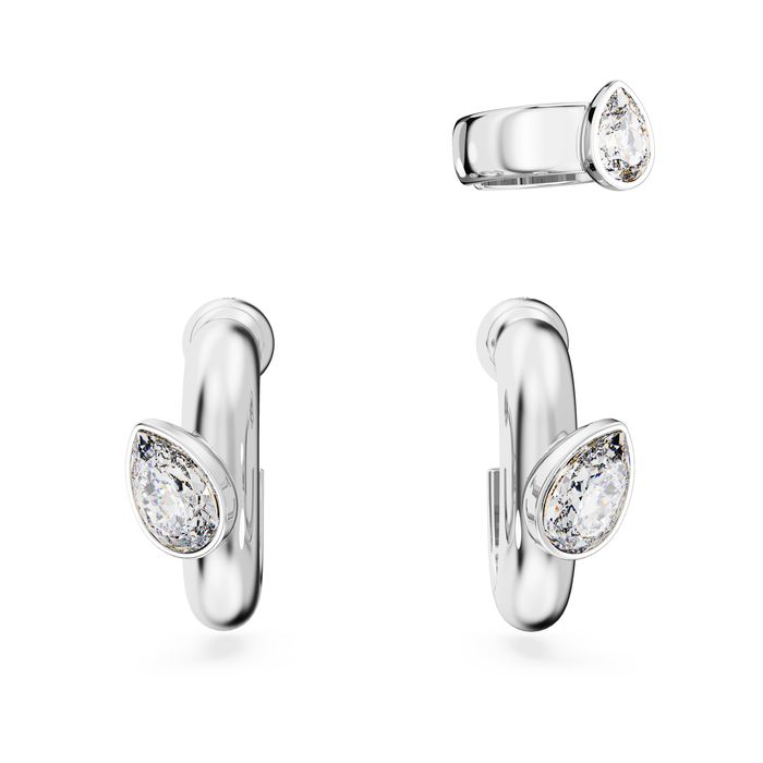 This matching set of earrings is a simple yet radiant way to elevate your style. Combining a rhodium plated mini hoop with a delicate ear cuff, each piece is bezel-set with a pear-shaped stone. An expressive use of crystals for a bold everyday look.