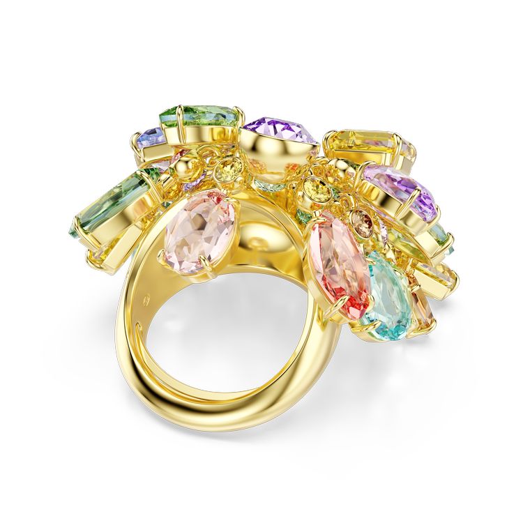 Bold, vibrant, and full of surprises. This stunning Gema ring showcases Swarovski’s best in color creation and precision cutting. The gold-tone design features a range of dangling crystals in different shapes and cheerful hues, creating a dazzling rainbow effect to show off your style on days when you’re feeling playful.
