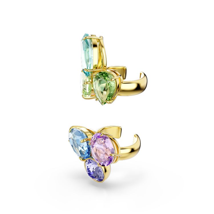 These cheerful Gema cuff earrings are a simple yet effective style choice. The gold-tone plated set includes two asymmetrical cuff earrings, each adorned with three colorful crystals. In the signature style of the Gema family, the crystals come in a variety of shapes and shades, giving the piece its own unique character.