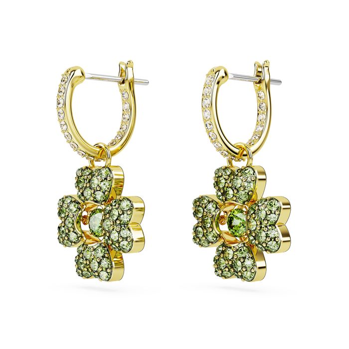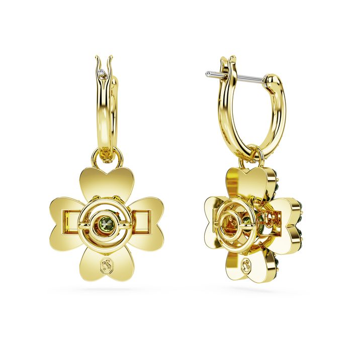 SWAROVSKI Idyllia drop earrings, Clover, Green, Gold-tone plated