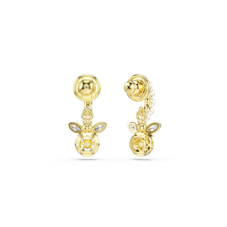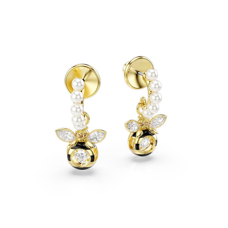 These sweet Idyllia earrings combine two bees that vibrate with light. Each gold-tone plated bee is set on a mini hoop with tiny Swarovski Crystal Pearls, while a clear moving stone is set in the center for endless reflections. Pair with the bee choker, ring or rigid bracelet to create a hive of nature-inspired pieces. Sweet as honey, this Idyllia rigid bee bracelet is designed to vibrate with light. The base adorns the wrist with clear pavé crystals, while the bee with black and yellow stripes is adorned with a moving stone for endless reflections. Combine it with the choker, ring or earrings in a bee design to create a hive of nature-inspired pieces.