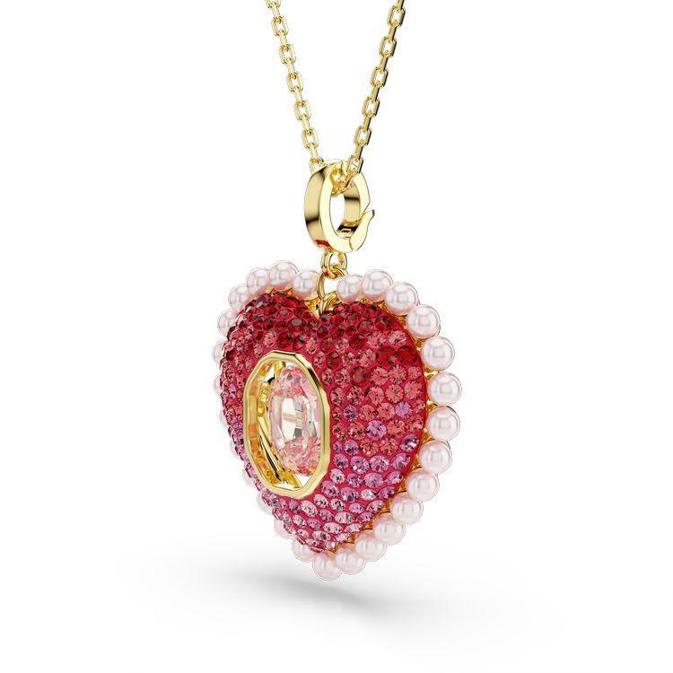 A statement of pure passion, this striking pendant features a removable love heart charm, which is decorated in Swarovski Crystal Pearls and shimmering crystals, all in a gradient of romantic shades. At the center, a pink dancing stone creates endless reflections of light every time you move. Wear it on the chain or attach the charm to other pieces of Swarovski jewelry to personalize your style.