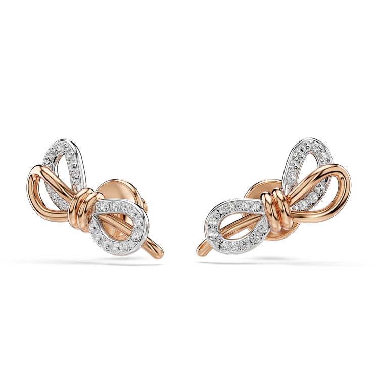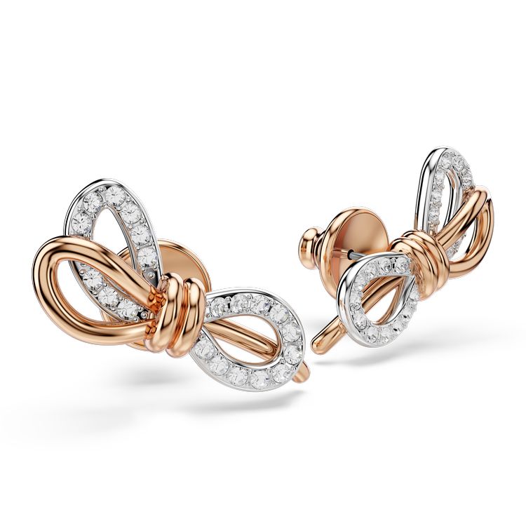 Signifying unity and close bonds, these Swarovski earrings are a meaningful way to enhance your style. Each 3D silhouette is tied up in a mix of rhodium and rose gold-tone plating, with a bow that is adorned in clear crystals. Wear them to infuse any look with significance and romance.