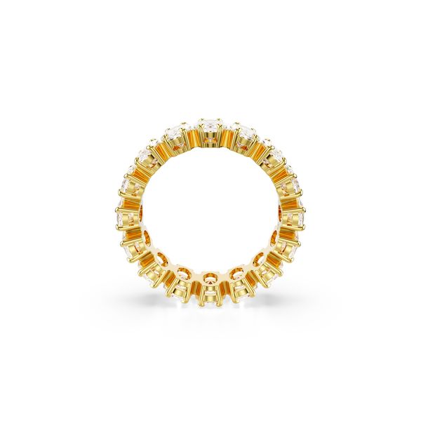 With a full circle of oval-cut Swarovski Zirconia, this Matrix ring delivers a look that is both unique and luxurious. The stones are placed within a refined prong setting that is gold-tone plated for a radiant and glowing effect. Wear this ring as one of your go-to favorites when personal expression is called for.