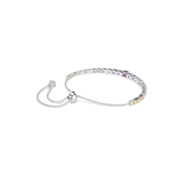 Pastel colors are used to their fullest in this classic Matrix Tennis bracelet. The rhodium-plated design features a series of round-cut crystals in graduated sizes and shades of pink, purple and yellow. Pair with the matching earrings or bracelet to maximize the effect.