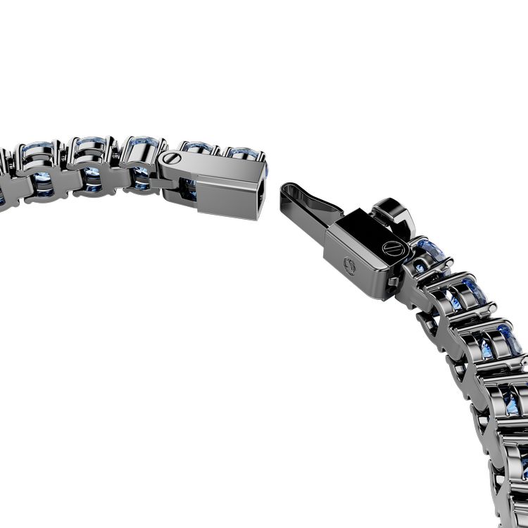 SWAROVSKI Matrix Tennis bracelet, Round cut, Blue, Ruthenium plated