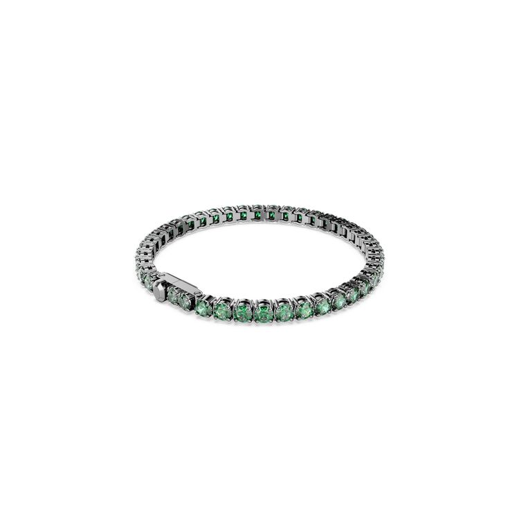SWAROVSKI Matrix Tennis bracelet, Round cut, Green, Ruthenium plated