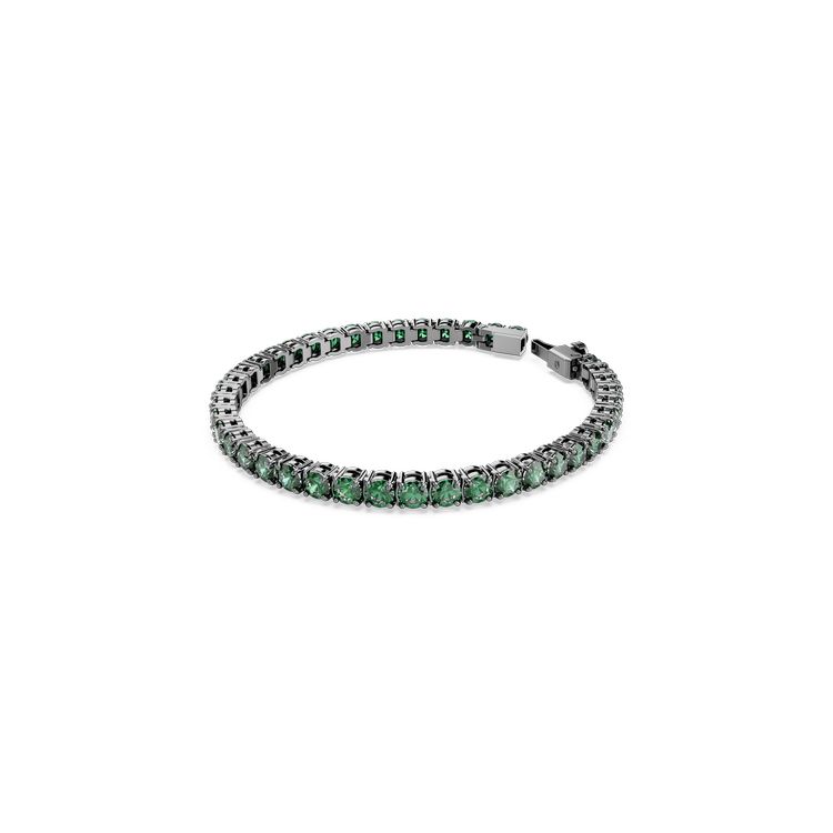 SWAROVSKI Matrix Tennis bracelet, Round cut, Green, Ruthenium plated