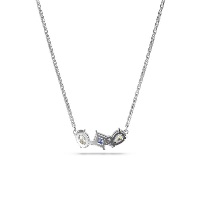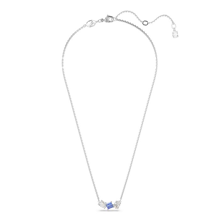 This elegant Mesmera pendant delivers exquisite refinement through its bold mix of cuts and color. Worn on a delicate chain, the rhodium plated design features a trio of prong-set Swarovski Zirconia in varying shapes with a radiant blue central stone. A wondrous gift that will accentuate any style.