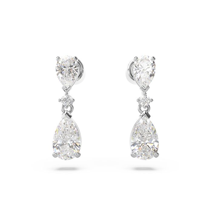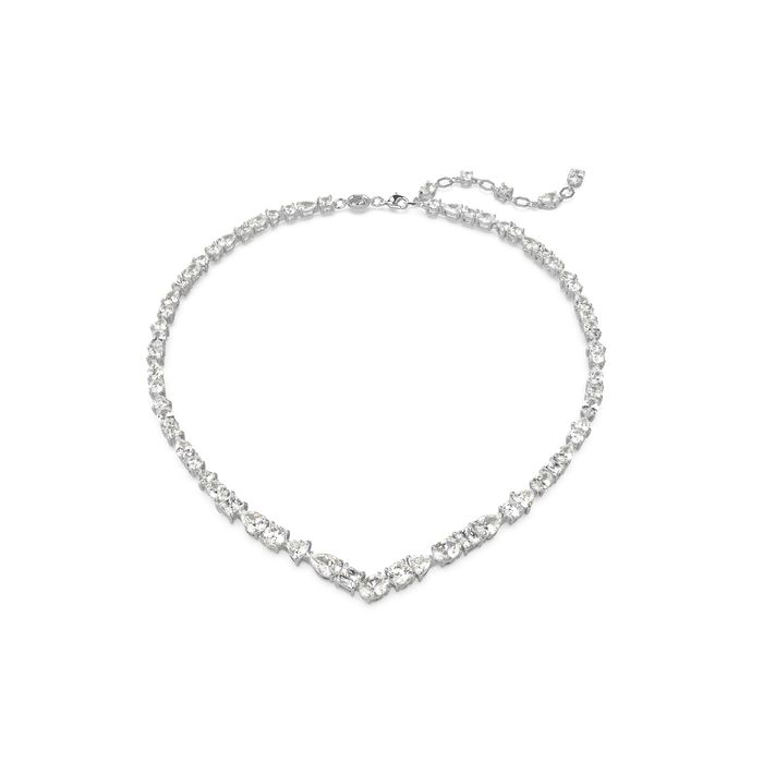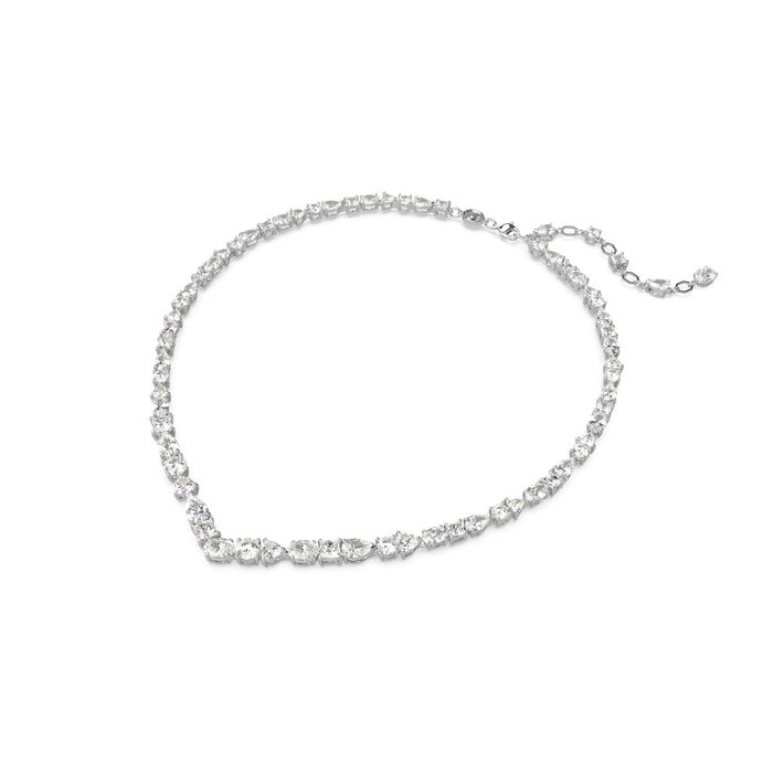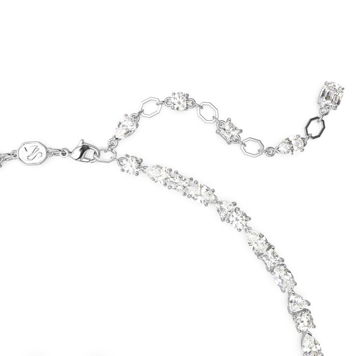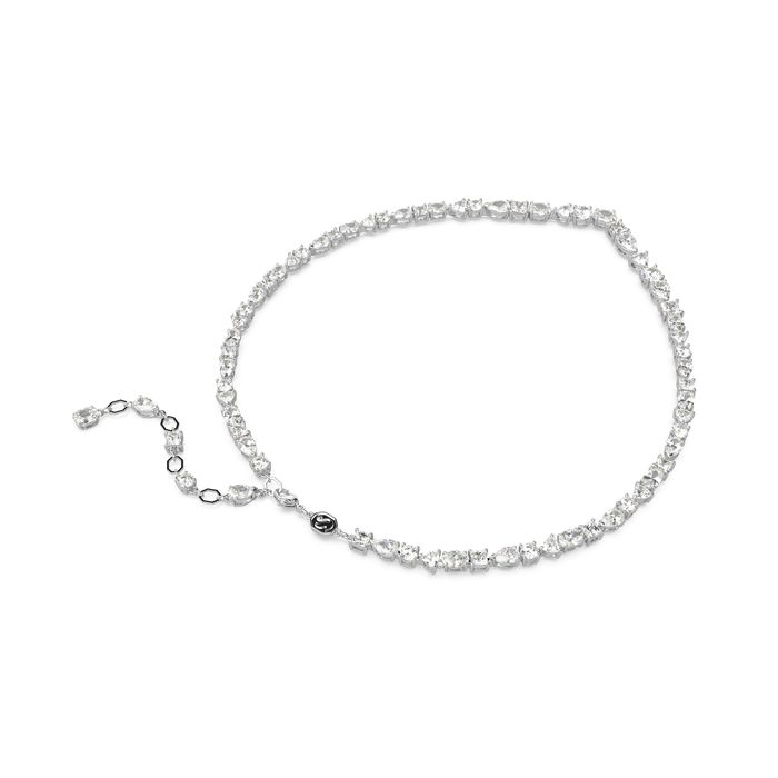Exquisite refinement is brought to life in this show-stopping jewelry set from the Mesmera family. The necklace is made with a string of eye-catching Swarovski Zirconia on a rhodium plating setting, all produced in a surprising mix of cuts and sizes. For extra luxury, the elongation is completed with a lobster closure and a scattering of Swarovski Zirconia. The light-catching earrings are also rhodium plated, with a bold hanging design featuring luminous pear-cut crystals. Gift this set to a loved one and instantly ignite their style.
