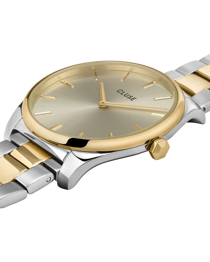 Γυναικείο ρολόι Cluse από ανοξείδωτο ατσάλι με χρυσό καντράν και μπρασελέ.