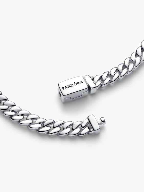 Ανανεώστε το look σας με αυτό το βραχιόλι με τη χοντρή αλυσίδα. Είναι κατασκευασμένο από ασήμι 925, ενώ και οι δύο πλευρές του είναι γυαλισμένες για μια ιδιαίτερα λαμπερή όψη. Κλείνει με ένα πλακέ κούμπωμα που έχει εγχάρακτο το λογότυπο της PANDORA.