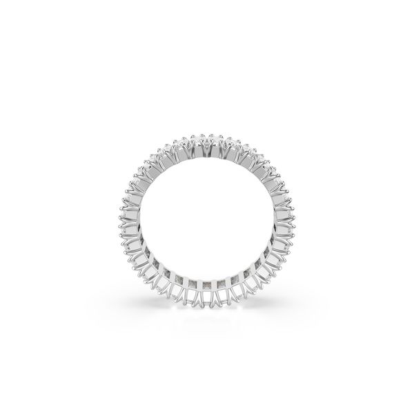 Από καμία συλλογή κοσμημάτων δεν πρέπει να λείπει μια λαμπερή βέρα. Αυτό το σχέδιο με φινίρισμα σε ασημί τόνο είναι πλήρως διακοσμημένο με Swarovski Zirconia κοπής baguette, κάθε ένα τοποθετημένο με εκλεπτυσμένο οδοντωτό δέσιμο. Ένα κομμάτι που προκαλεί αίσθηση μόνο του ή μαζί με παρόμοια εκθαμβωτικά δαχτυλίδια από την οικογένεια Matrix.