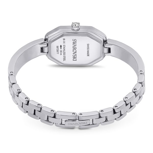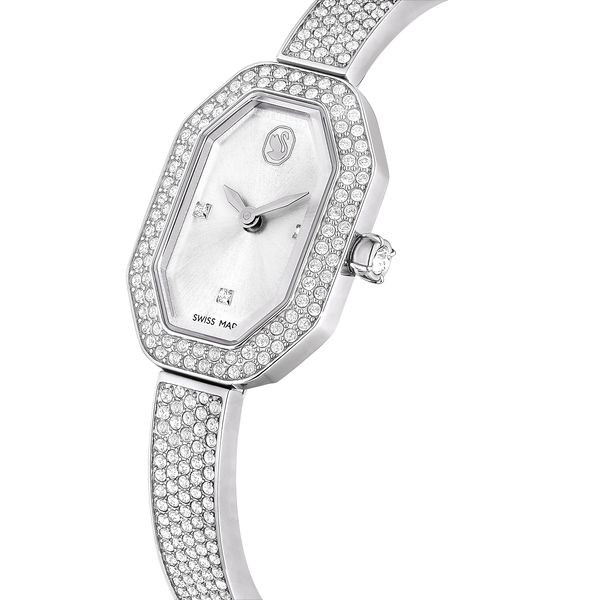 Φτιαγμένο στο εμβληματικό σχήμα οκτάγωνου του Swarovski, αυτό το μοναδικό ρολόι βραχιόλι Dexera είναι φτιαγμένο για μέγιστη αίγλη. Η κάσα από ανοξείδωτο ατσάλι είναι 20mm x 30,5mm και στολίζεται με 92 κρύσταλλα στη στεφάνη. Αυτό παρέχει ένα τέλειο πλαίσιο για το καντράν Sunray, το οποίο διαθέτει ένα λογότυπο κύκνου στις 12:00 και τρεις κρυσταλλωμένους δείκτες ευρετηρίου. Μαζί με ένα μόνο εκθαμβωτικό κρύσταλλο στο στέμμα, το ρολόι ζωντανεύει επίσης από 194 κρύσταλλα που τοποθετούνται κατά μήκος του ρυθμιζόμενου βραχιολιού, προσφέροντας εξαιρετική ομορφιά κάθε ώρα. Αυτό το ελβετικής κατασκευής ρολόι είναι αδιάβροχο στα 30 μέτρα και συνδυάζει τη χαρούμενη υπερβολή με την υπογραφή της Swarovski savoir-faire.