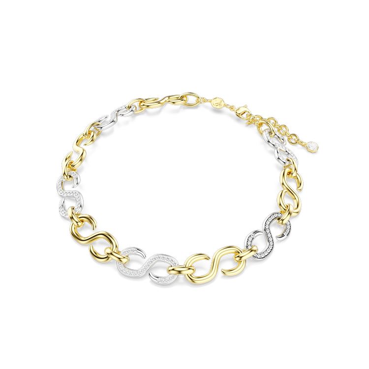 Είτε φορεθεί ως τσόκερ είτε ως κολιέ all-around, αυτό το κόσμημα Dextera μπορεί να προσαρμοστεί στο στυλ σας. Το σχέδιο διαθέτει εναλλασσόμενους κρίκους σε χρυσό τόνο και επιμετάλλωση ροδίου, με διαφανή κρύσταλλα για μέγιστη λάμψη. Με καμπυλωτή και βιομηχανική εμφάνιση, μπορεί να συνδυαστεί με άλλα ασορτί κομμάτια Dextera με την ίδια χαρακτηριστική σιλουέτα.
