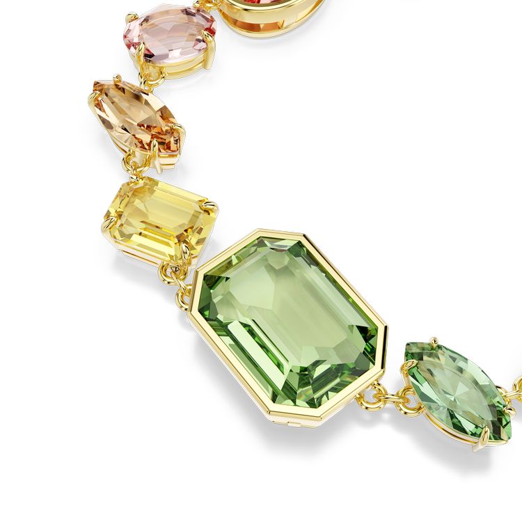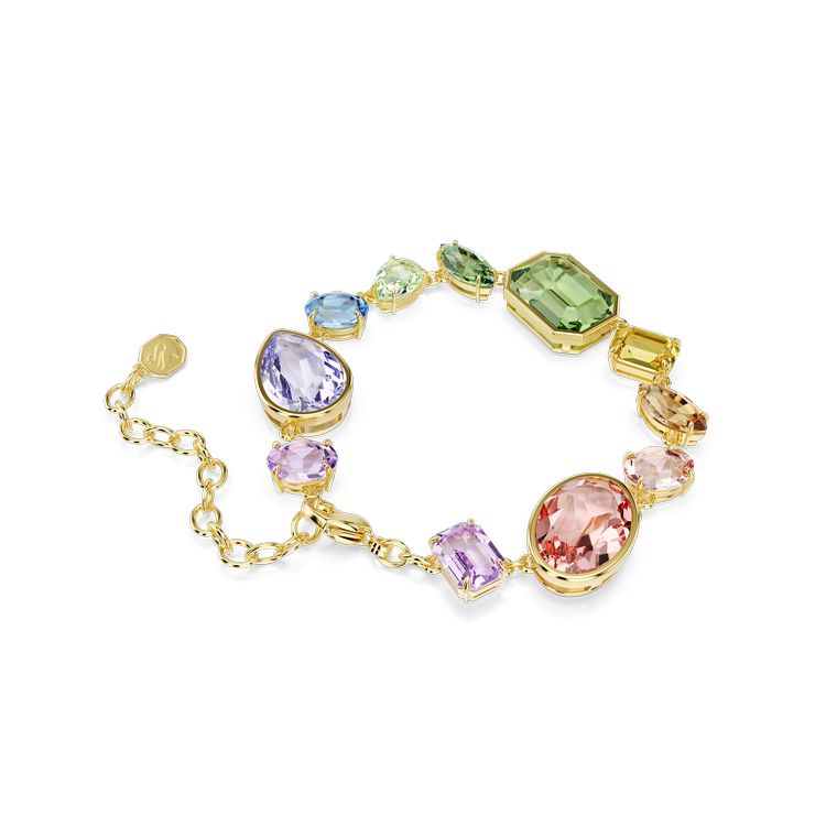 Διακοσμημένο με κρύσταλλα κάθε σχήματος και χρώματος, αυτό το βραχιόλι σε χρυσό τόνο ενσαρκώνει το χαρούμενο και απρόσμενο στυλ της οικογένειας Gema της Swarovski. Το σχέδιο αποπνέει αίσθηση σαγήνης μέσω της ασύμμετρης διάταξής του, ενώ μπορείτε να προσθέσετε τη δική σας προσωπική πινελιά, διακοσμώντας το βραχιόλι με γούρια από την οικογένεια Idyllia.