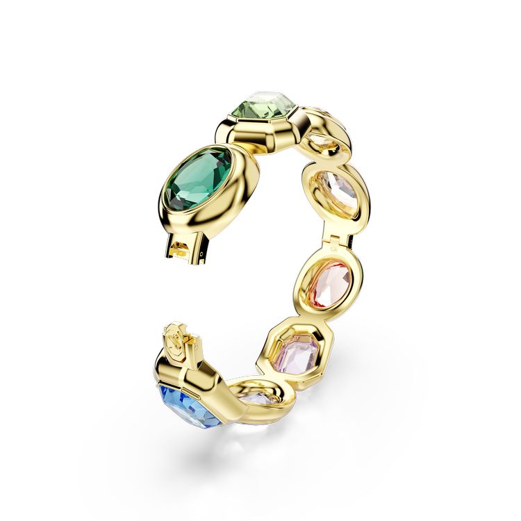 Με τα τολμηρά, σαν πολύτιμους λίθους, κρύσταλλά του, αυτό το βραχιόλι Swarovski αναδεικνύει εντυπωσιακά τον καρπό. Το λαμπερό σχέδιο διαθέτει ασύμμετρα κρύσταλλα σε διαφορετικά χρώματα και σχήματα, το καθένα τοποθετημένο σε αστραφτερό δέσιμο σε στεφάνη. Μια μοναδική αίσθηση κίνησης δημιουργείται επίσης μέσω των καινοτόμων κουμπωμάτων με πόρπη, που εμποτίζουν το κόσμημα με το savoir-faire της Swarovski.