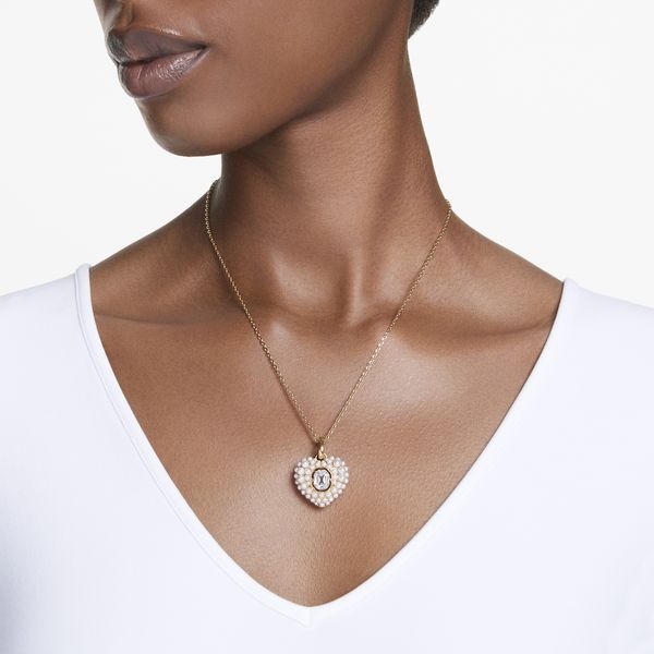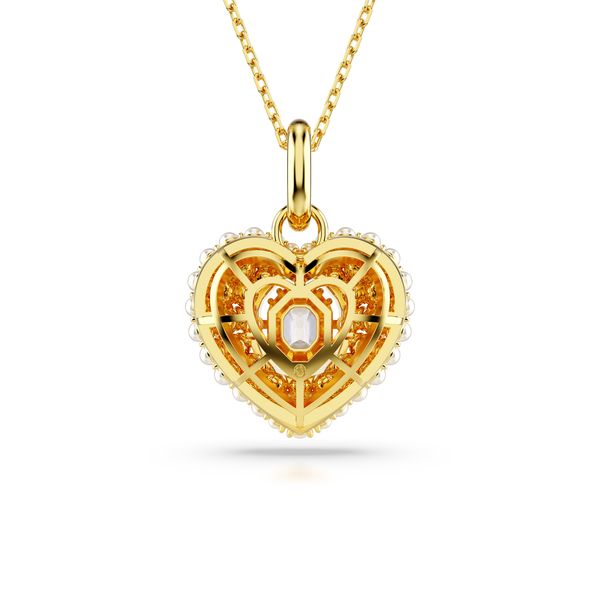 Αφήστε την αγάπη σας να λάμψει με αυτό το φωτεινό μενταγιόν σε σχήμα καρδιάς από την οικογένεια Hyperbola. Τα επιχρυσωμένα κοσμήματα έχουν δημιουργηθεί με σχέδιο κλουβιού για μέγιστο όγκο. Για να ενισχύσει το θολωτό αποτέλεσμα, είναι στολισμένο με στρογγυλά κρυστάλλινα μαργαριτάρια, τοποθετημένα στη θέση τους χρησιμοποιώντας την εκθαμβωτική τεχνική chatonnage. Στο κέντρο, μια οκταγωνική πέτρα χορού τραβάει το φως από κάθε γωνία, ενώ οι άκρες του μενταγιόν ενισχύονται με μια σειρά από μικροσκοπικά λευκά κρυστάλλινα μαργαριτάρια. Αγαπήστε αυτό το κόσμημα μόνοι σας ή δώστε το σε κάποιον που λατρεύετε.