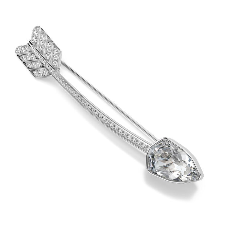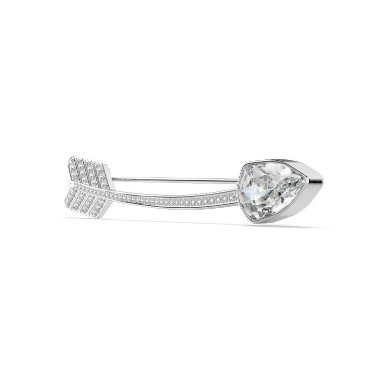 Για μια εναλλακτική προσέγγιση στο ρομαντικό στυλ, αυτή η καρφίτσα με επιροδιωμένο ρόδιο έχει σχήμα σαν το βέλος του Έρωτα και διαθέτει μια ποικιλία από διαφανή κρυστάλλινα κοψίματα που προσθέτουν λάμψη στο σχέδιο. Ένας παιχνιδιάρικος τρόπος για να φωτίσετε την αγάπη, αυτή η καρφίτσα μπορεί να φορεθεί με ασορτί κοσμήματα από την ίδια οικογένεια.
