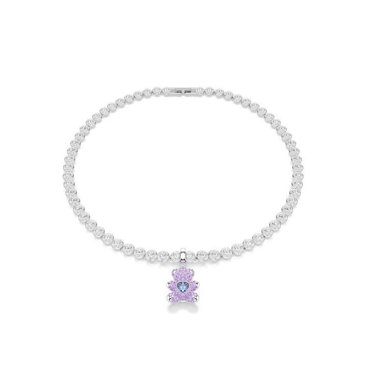 Τα γούρια της Swarovski προσθέτουν μια προσωπική πινελιά στο καθημερινό σας στυλ και είναι συμβατά με πολλά κοσμήματα των οικογενειών Matrix, Una και Idyllia. Αυτό το αρκουδάκι με επιμετάλλωση ροδίου είναι μια ιδανική επιλογή για όσους έχουν παιχνιδιάρικο πνεύμα. Διακοσμημένο με μοβ κρύσταλλα και μια απαστράπτουσα μπλε κινούμενη πέτρα στο κέντρο, το σχέδιο διαθέτει ένα καινοτόμο κούμπωμα, που σας προσφέρει τη δυνατότητα να τοποθετείτε το γούρι σε διάφορα κολιέ και βραχιόλια.