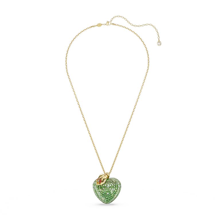 Αυτό το λαχταριστό μενταγιόν σε σχέδιο μήλου θα προσδώσει σε κάθε εμφάνιση μια χαρούμενη πινελιά από τη φύση. Το πράσινο κέντρο είναι φιλοτεχνημένο με ένα μεγάλο Swarovski ReCreated™ crystal, το οποίο είναι επιπλέον διακοσμημένο με pavé και περιβάλλεται από διαφανή ρητίνη. Μια ακόμα νότα φινέτσας αποτελεί το φύλλο με επιμετάλλωση σε χρυσό τόνο και η γλυκιά πασχαλίτσα που ανοίγει τα φτερά της.