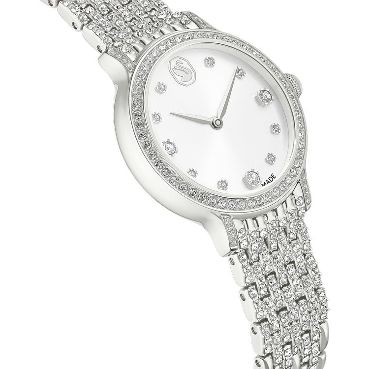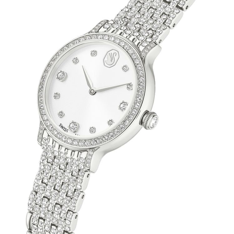 Αυτό το ρολόι 31 χιλιοστών είναι κατασκευασμένο από ανοξείδωτο ατσάλι και αντλεί έμπνευση από τη σύντηξη μετάλλου και κρυστάλλων που ορίζει την οικογένεια κοσμημάτων Imber. Η στεφάνη pavé είναι διακοσμημένη με 68 μεμονωμένους κρυστάλλους, ενώ άλλοι 198 κρύσταλλοι χρησιμοποιούνται για τη διακόσμηση του βραχιολιού επτά κρίκων. Επιπλέον λάμψη μπορεί να βρεθεί στο καντράν Sunray, με τη λαμπερή επιφάνειά του να τονίζεται από κρυστάλλινους δείκτες ευρετηρίου, ενώ ένα εκλεπτυσμένο έμβλημα Κύκνου τοποθετείται στη θέση 12 η ώρα. Μια επιλογή που αποπνέει αίγλη, αυτό το ρολόι Swiss Made είναι αδιάβροχο έως τα 50 μέτρα.