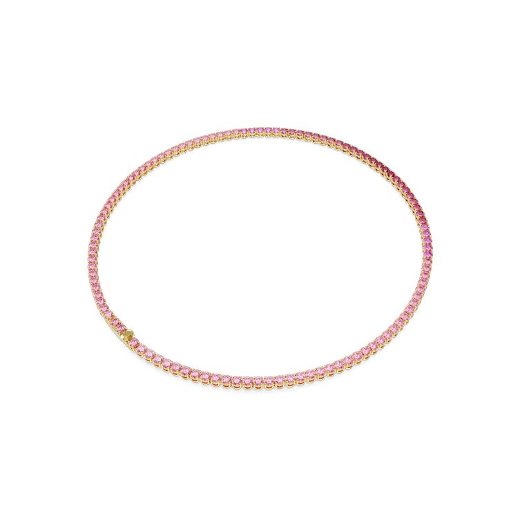 Με τη ζωηρή ροζ απόχρωσή του, αυτό το κολιέ δημιουργήθηκε για να μαγεύει. Το σχέδιο διαθέτει μια πλήρη σειρά από κρύσταλλα στρογγυλής κοπής, όλα με δέσιμο σε επιμετάλλωση σε χρυσό τόνο που περιλαμβάνει ένα ασφαλές και εκλεπτυσμένο κούμπωμα. Το συνολικό αποτέλεσμα αποπνέει αναζωογονητική ομορφιά που σας επιτρέπει να αναδείξετε τη γοητεία σας, είτε την ημέρα είτε τη νύχτα.