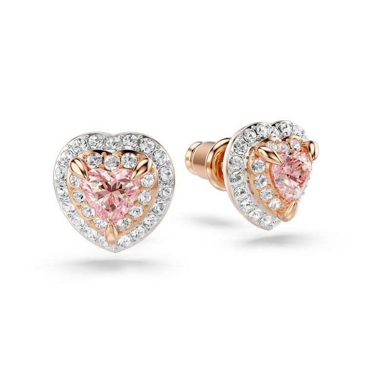 Κατασκευασμένο ως μια αγνή έκφραση αγάπης, κάθε ένα από αυτά τα καρφιά σε σχήμα καρδιάς διαθέτει ένα έντονο ροζ ζιρκόνιο Swarovski, περιτριγυρισμένο από ένα πλαίσιο από διαφανές pavé σε πολλά στρώματα. Μια όμορφη ιδέα δώρου για τον εαυτό σας ή ένα αγαπημένο σας πρόσωπο, αυτά τα σκουλαρίκια μπορούν να συνδυαστούν με το ασορτί μενταγιόν ή δαχτυλίδι.