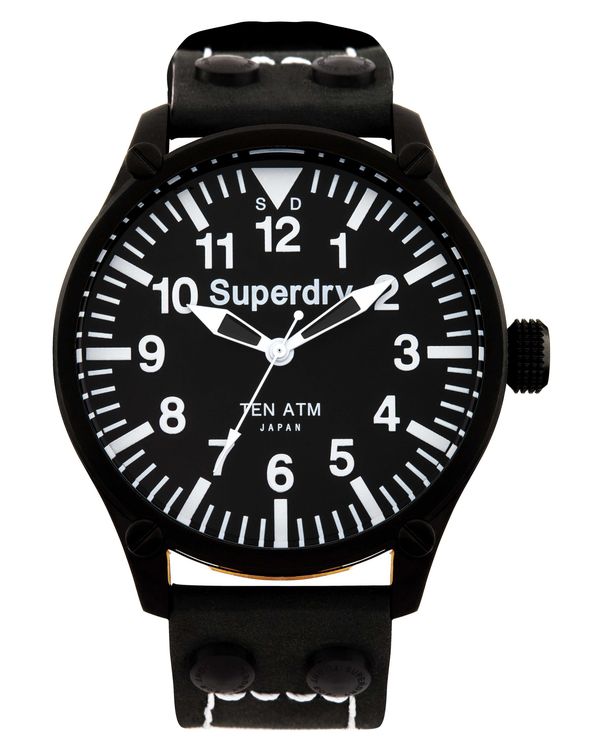 SUPERDRY Aviation Equipment Black Leather Strap